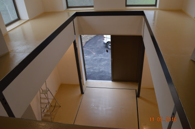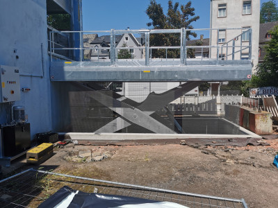 Hebebühne im Werkstattbereich zur Überbrückung einer Etage durch einen Deckendurchbruch hindurch. |