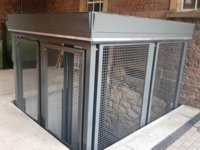 Diese Hebebühne verbindet die Verkaufsebene mit der Werkstattebene eines Motorradhauses. |