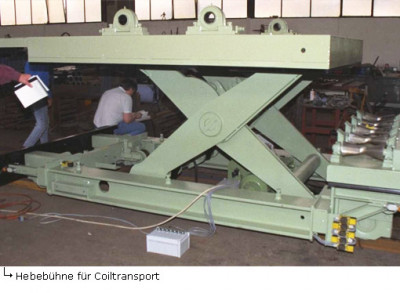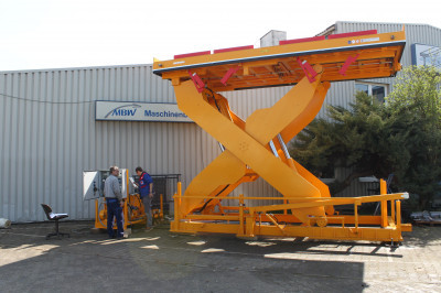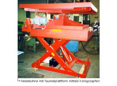 Hebebühne mit Taumelplattform mittels Königszapfen.