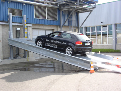 Fahrversuchsrampe mit automatischer Höhenverstellung um 5° zum Traktions-Tests bei unterschiedlichen Oberflächen.